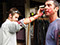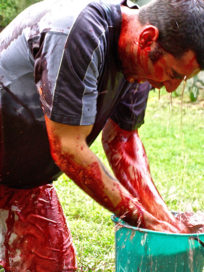 Paul tastes the bloody goodness.